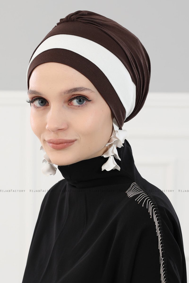 Elsa - Marron & Crème Coton Turban De Ayse Turban.