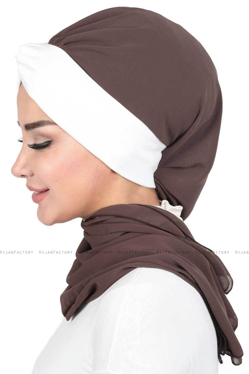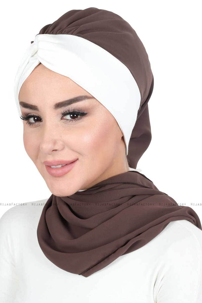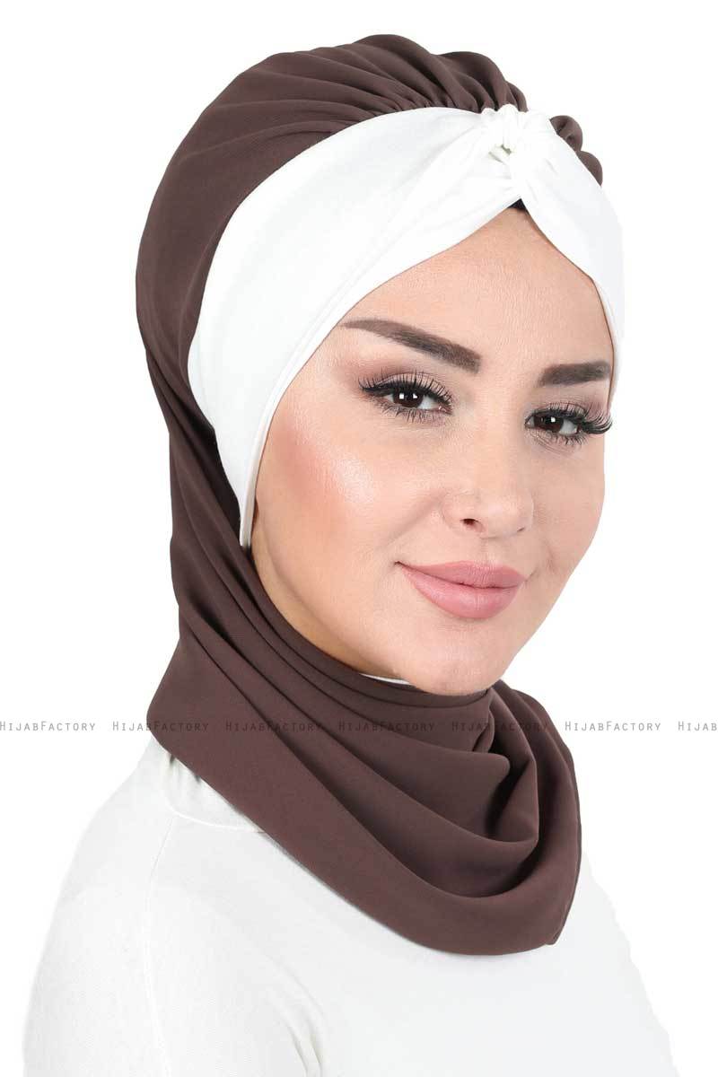 Gill - Hijab Pratique Instant One Piece Marron & Crème De Ayse Turban.
