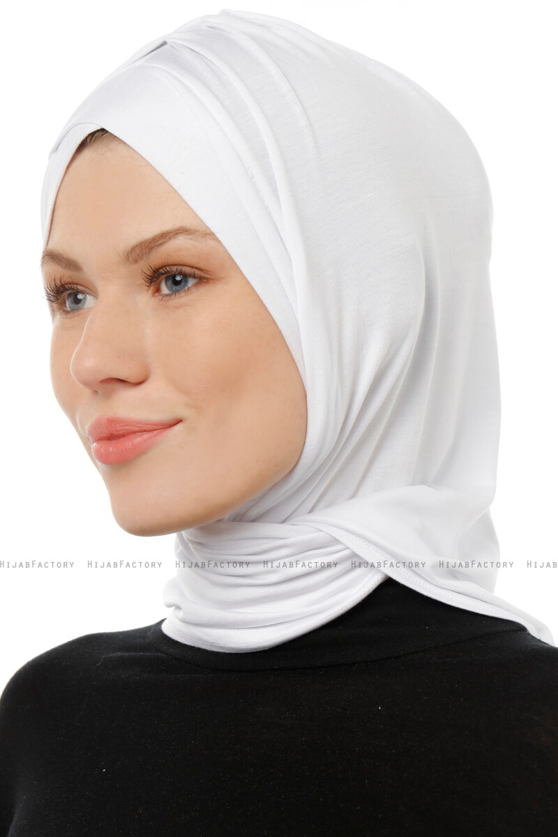 Isra Cross - Hijab Pratique One-Piece Viscose Blanc De Ecardin En Turquie.