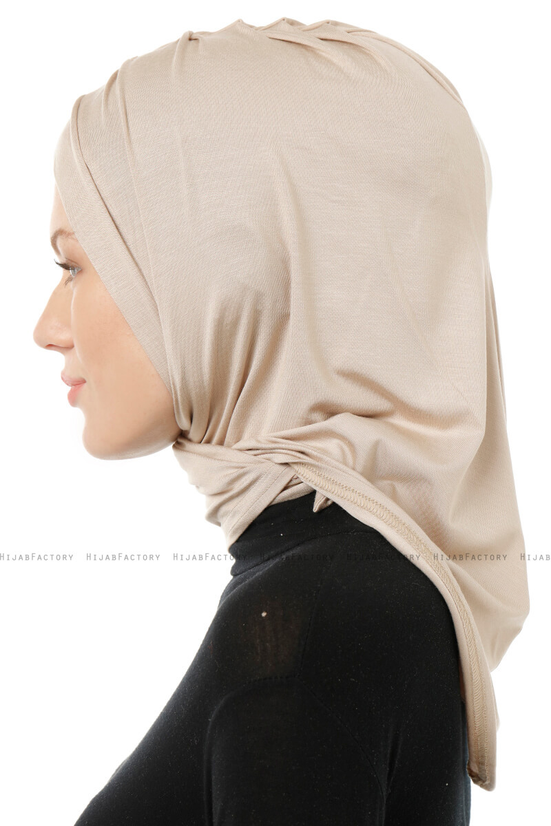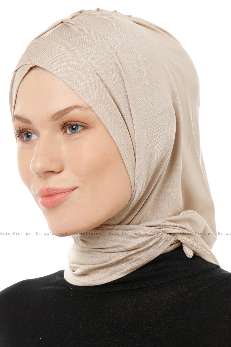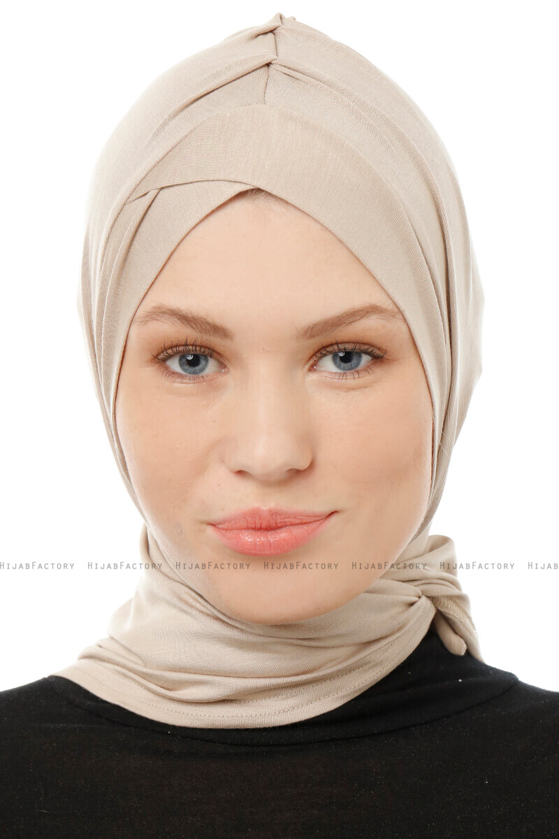 Isra Cross - Hijab Pratique One-Piece Viscose Taupe Clair De Ecardin En Turquie.
