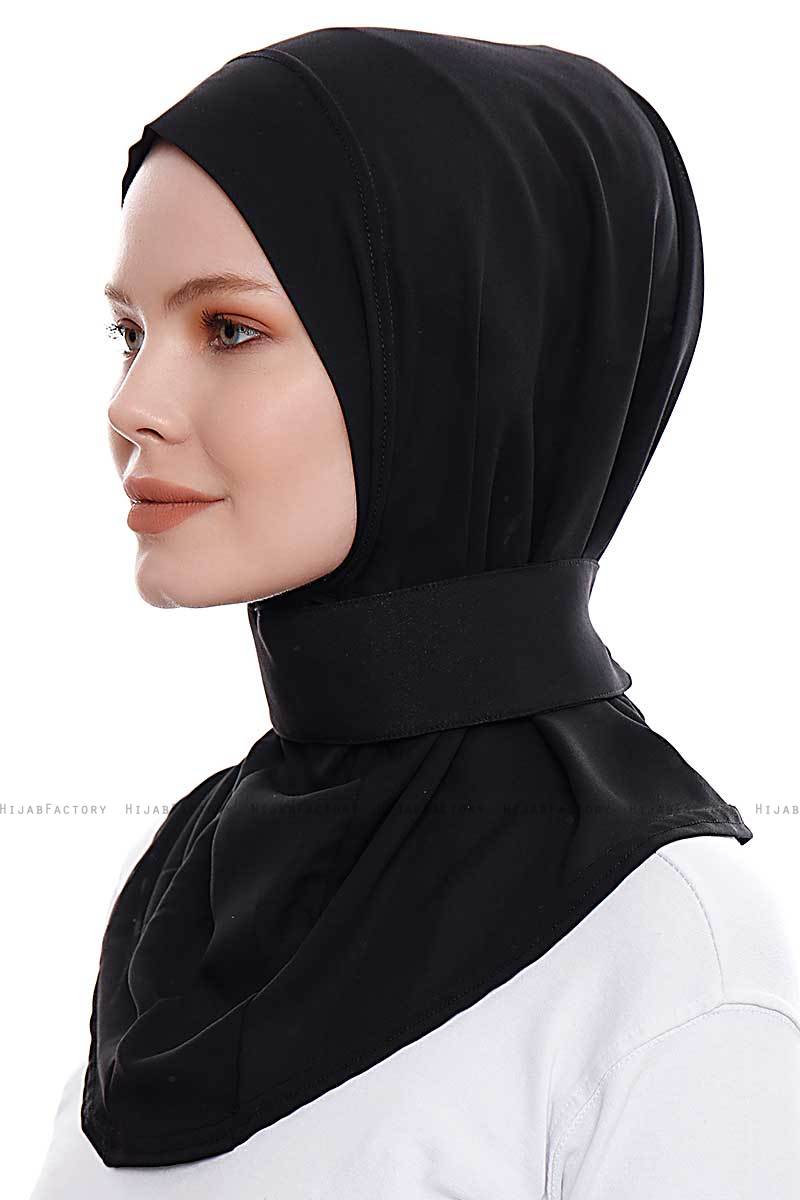 Narin - Hijab Crepe Pratique One-Piece Noir De Ecardin en Turquie.