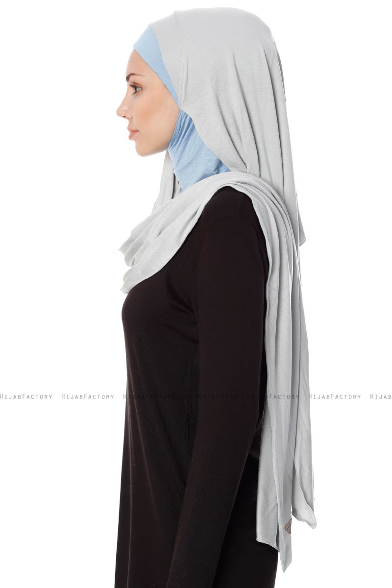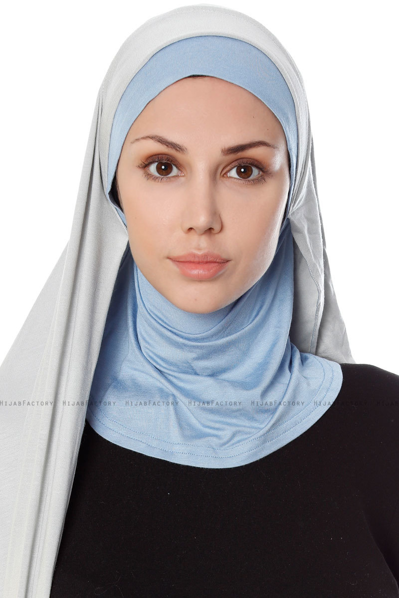 Naz - Hijab Jersey Pratique One-Piece Gris Clair & Bleu Clair De Ecardin En Turquie.